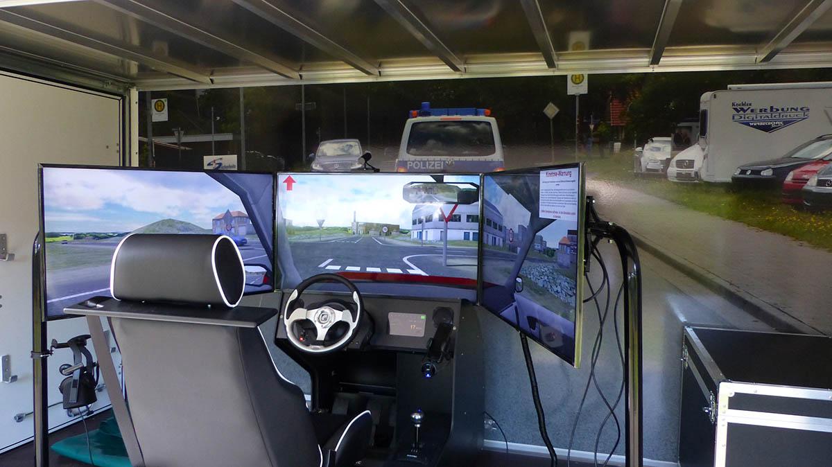 Speziell für unsere Rettungsdienste halten wir den Einsatzfahrtrainer bereit. Also bei uns im Simulator üben, bevor es auf der Straße ernst wird.