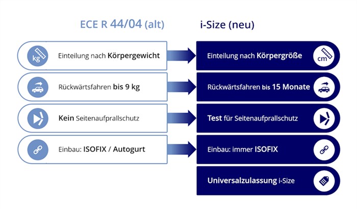 - UN ECE Reg. 44/03 (ab September 2023 Verkaufsverbot!